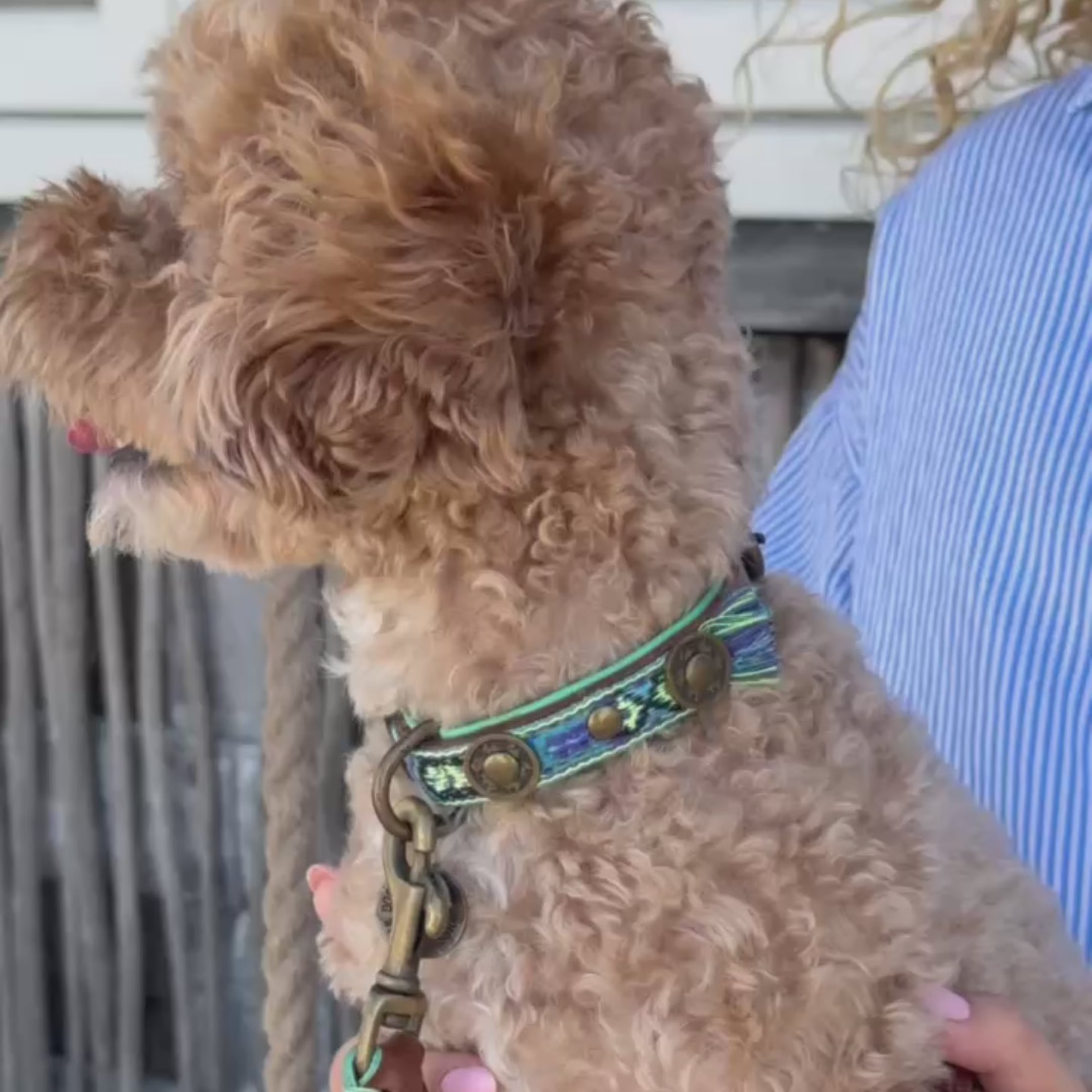 De bruin met blauwe Boho Juan is een geweldige halsband voor de kleurrijke look. De Boho collectie bestaat uit handgemaakte geborduurde en gestikte kleurrijke halsbanden. Een tijdloos design gecombineerd met de mooiste kleuren.