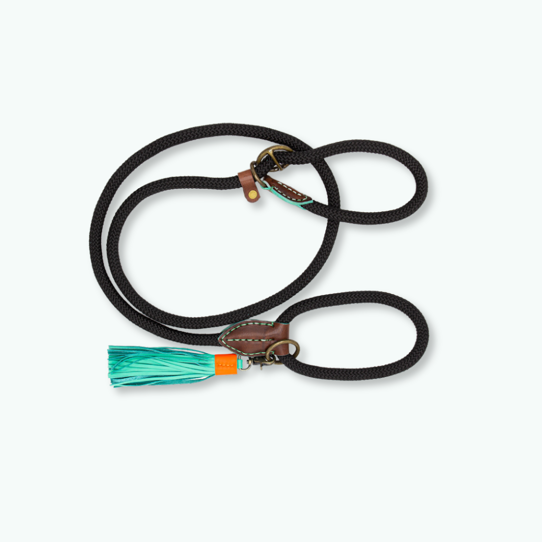 Die Long John Stone slip lead ist eine wunderschöne schwarze Leine mit handgesteppten braunen Lederdetails. Der Look wird durch den Anhänger in unserer DWAM Türkisfarbe vervollständigt. Die slip leads lassen sich einfach auf die gewünschte Grösse einstellen. Die Leine zieht nicht fester als dieser Punkt, so dass sich die Leine nie unangenehm eng anfühlen wird.