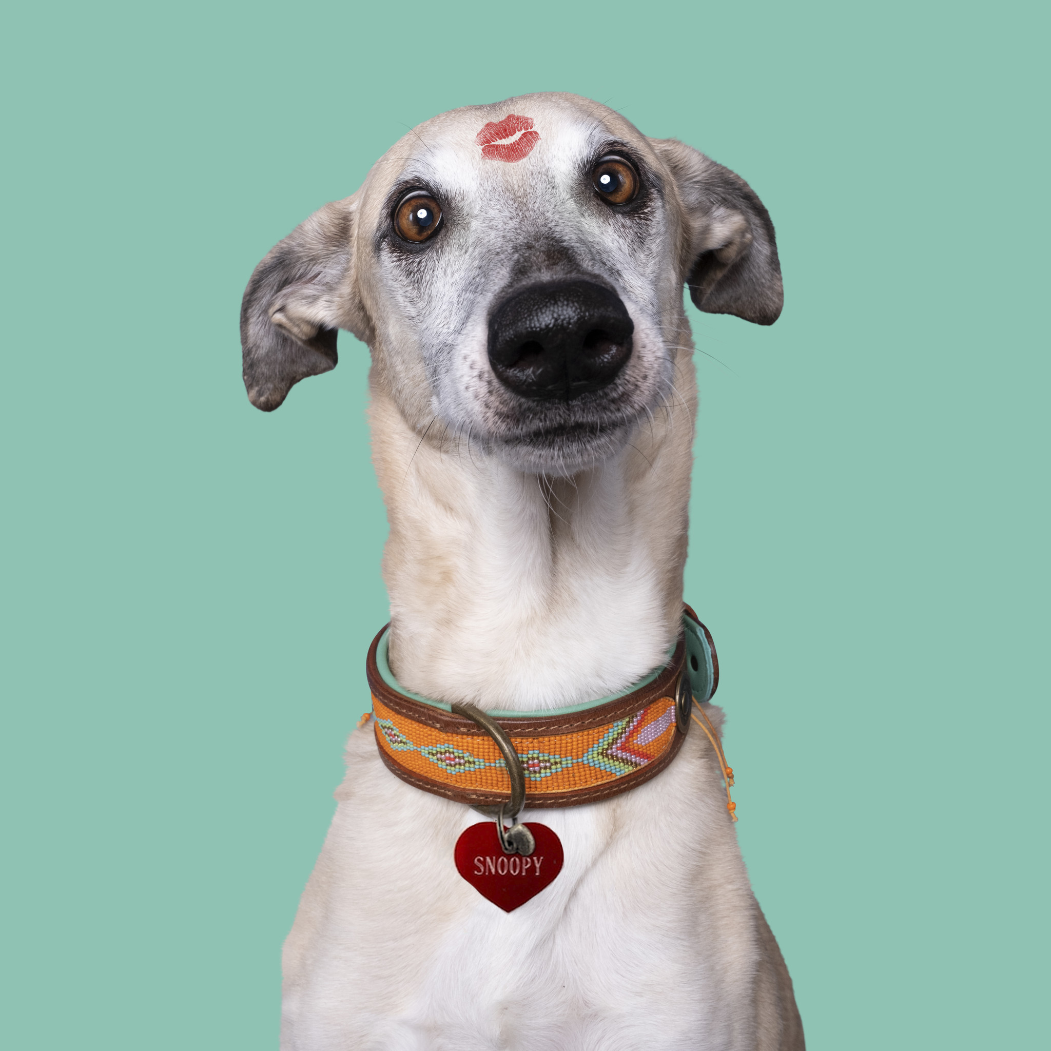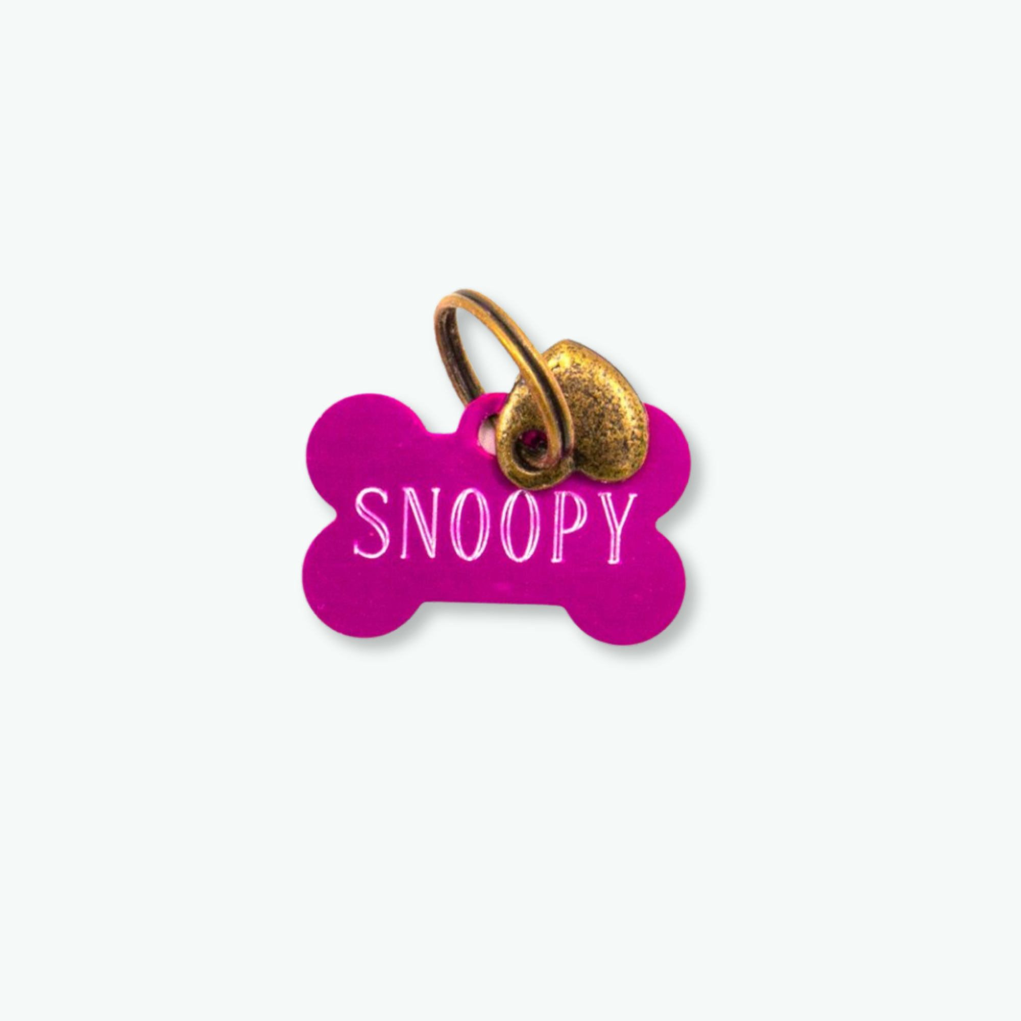 With your dog’s new collar or harness a nice dog tag with his or her name is of course indispensable! This cheerful bone will complete our dog’s outfit. In addition, your dog always carries your phone number with him/her, which is a safe idea.