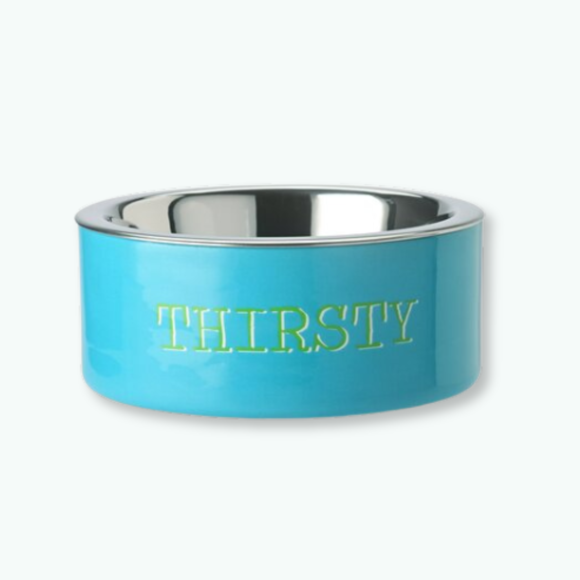Gamelle pour chien élégante en acier inoxydable avec le texte amusant "Thirsty".