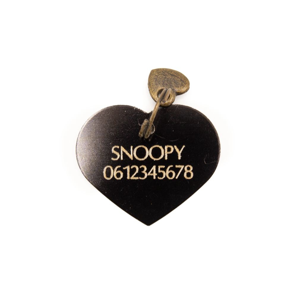 Un cœur design, avec le nom et le numéro de téléphone de votre adorable chien !