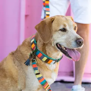 De Mr & Mrs Smith halsband van Dog with a Mission is handgemaakt, kleurrijk en comfortabel, perfect voor elke dag. Met een zachte binnenkant voor extra comfort en een opvallend ontwerp. Voeg de bijpassende lijn en tas toe voor de complete look. Ideaal voor je dagelijkse wandelingen met stijl.