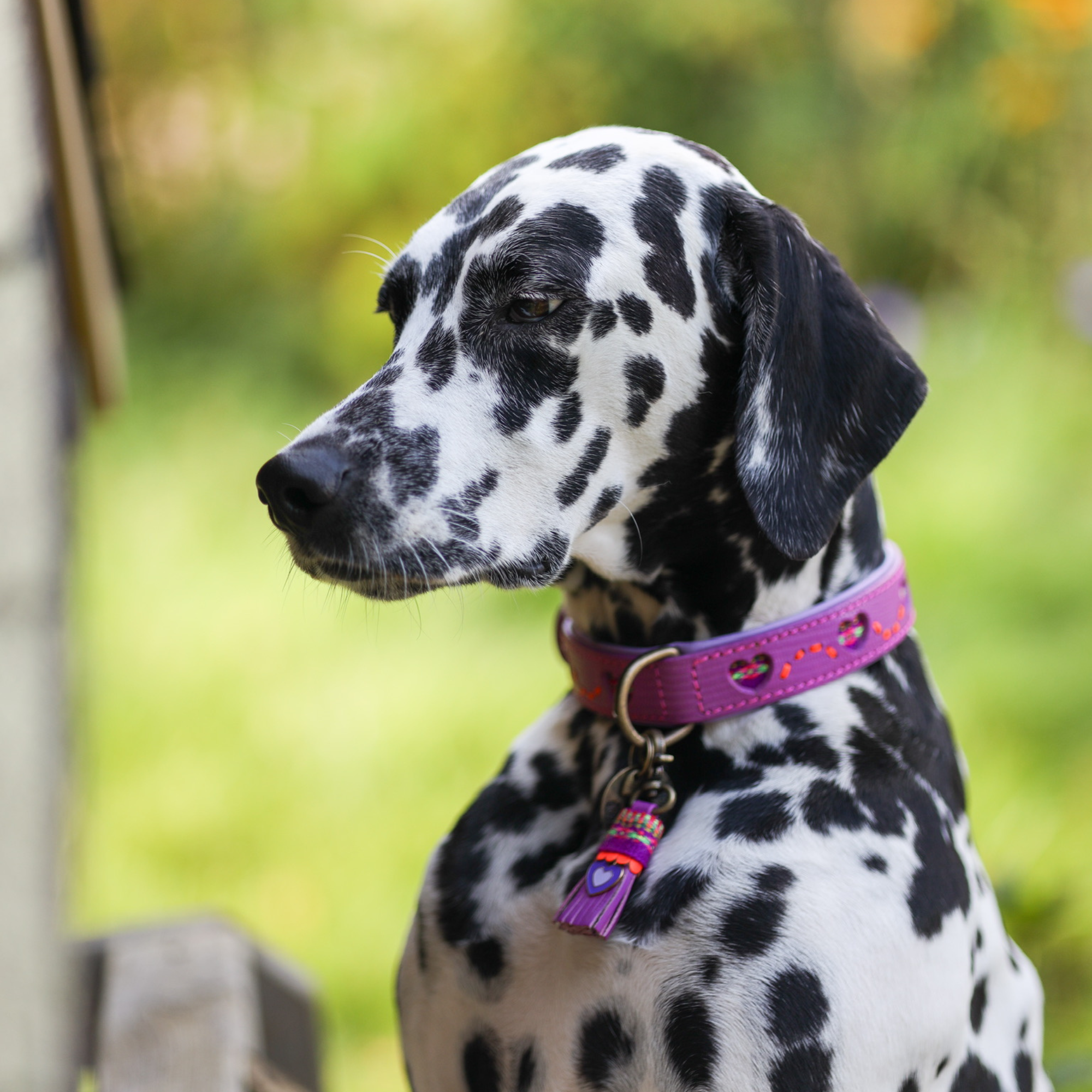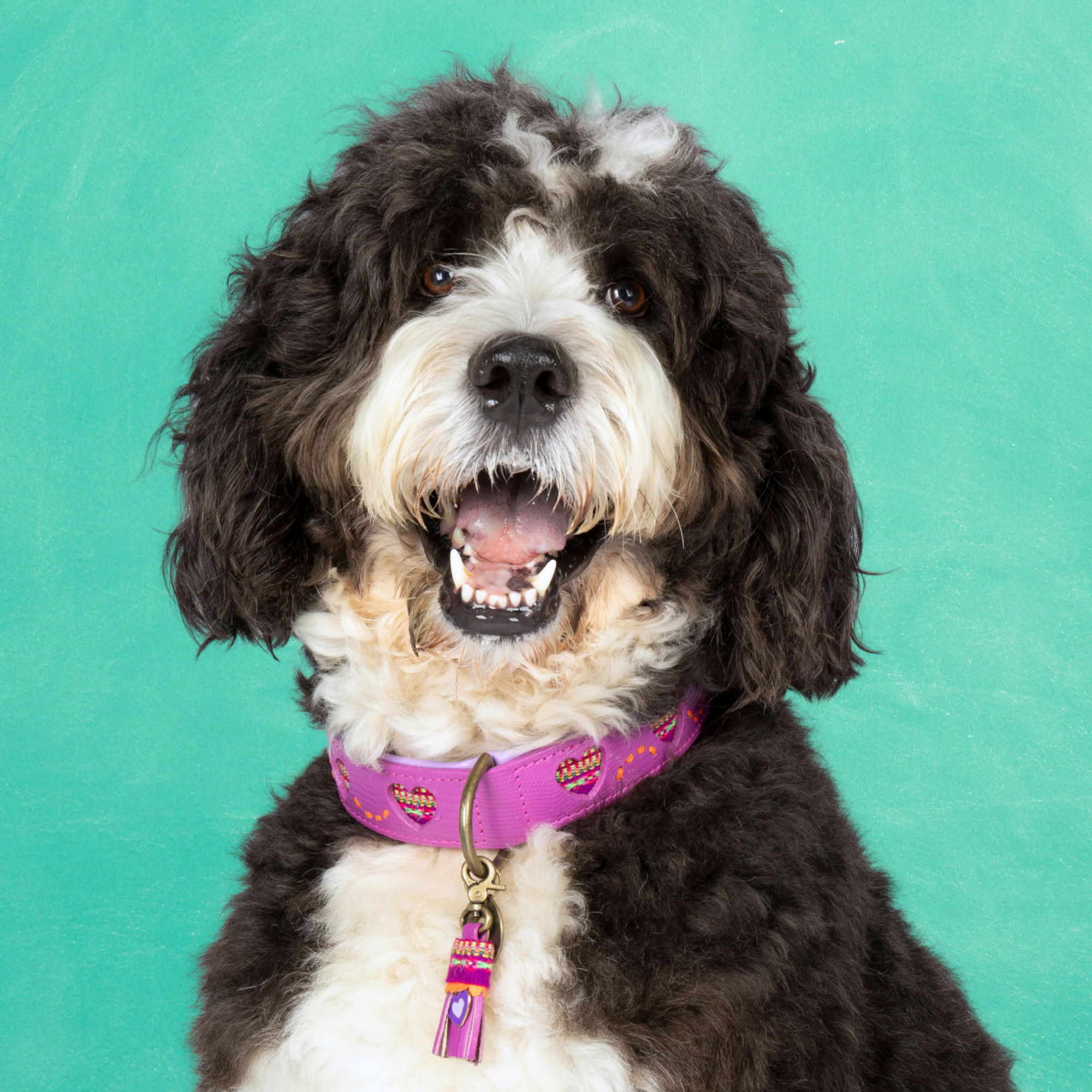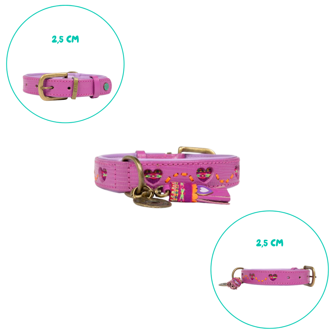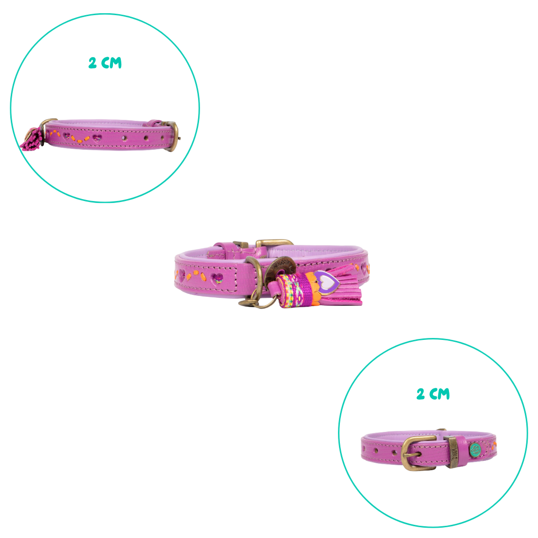 De zachte paarse tint met speelse hartjesdetails straalt liefde en positiviteit uit. De halsband is gemaakt van hoogwaardig leer en afgewerkt met een vrolijk bedeltje met ons herkenbare hartje. Ideaal voor dagelijkse wandelingen én bijzondere momenten samen.